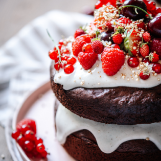 Super Beeren Schokoladen Geburtstagskuchen - vegan