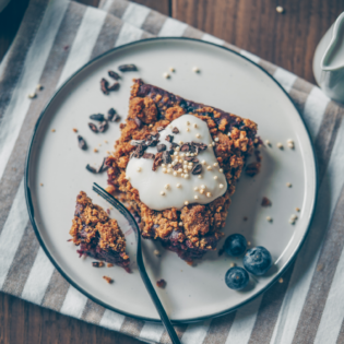 Gebackener Blaubeerkäsekuchen mit Zimtstreuseln – vegan – enthält Werbung