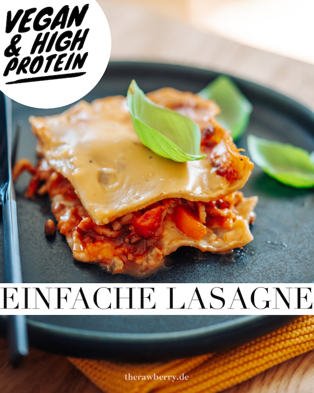 Letzte Woche war es aber endlich so weit. Man kann nur eine bestimmte Anzahl an Tagen ohne leckere Lasagne aushalten und dieser Zeitrahmen wurde definitiv überschritten. Also ran ans Werk! Ich habe mich hierfür für veganen Käse auf Kokosbasis und veganes Hack auf Erbsenprotein-Basis entschieden. Zudem hatte ich noch gekochte Linsen in die Bolognese gegeben, um sie so proteinreich und sättigend wie nur möglich zu machen.