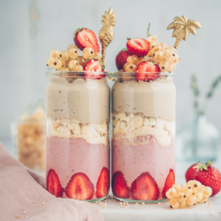 Tiramisu! Habt ihr es schon einmal versucht? Gewöhnlicher Weise finden sich hier Molkeprodukte, Alkohol und ganz schön viel Fett! Aber nicht in dieser Version. Ich habe das ganze mal wieder viel gesünder und einfacher gestaltet. Warum? Weil es einfach besser schmeckt und dem Körper dann auch gut tut. Ein wenig süß und ein bisschen Fett darf man sich auch gönnen. Hier also mein komplett veganes, gesundes Erdbeer-Tiramisu. Ganz ohne Kaltstellen und direkt verzehrfertig. Seht selbst: