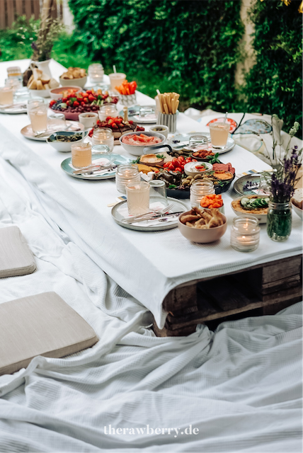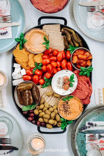 Im Juli hatten wir das erste Fußballspiel von meinem Sohn mit anschließend kleiner Feier bei uns daheim. Und da das ganze eine eher spontane Aktion gewesen war, hatte ich mich kurzer Hand für eine Snack Platte entschieden. Oliven, vegane Streichcreme, Tomaten und was das Herz begehrt. Das tolle ist, es gibt keine festen Regeln und man kann die Platten so erstellen, wie es einem Beliebt, was gerade verbraucht werden muss, oder sich sogar einem Thema widmen.