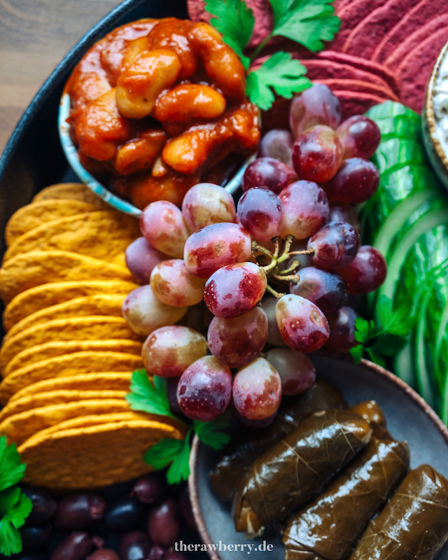 Natürlich könnt ihr die Platte auch mit anderen veganen Leckeren füllen