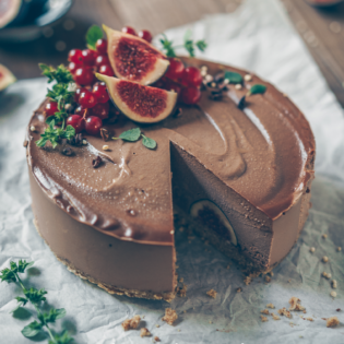 Veganer Schoko-Käsekuchen mit Feigen - roh, zuckerfrei, glutenfrei